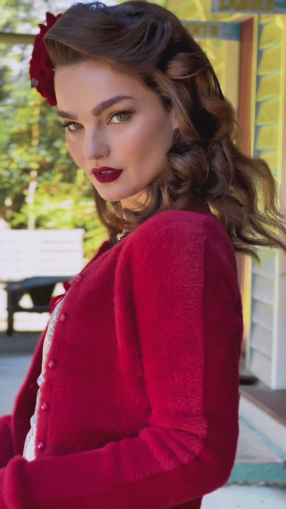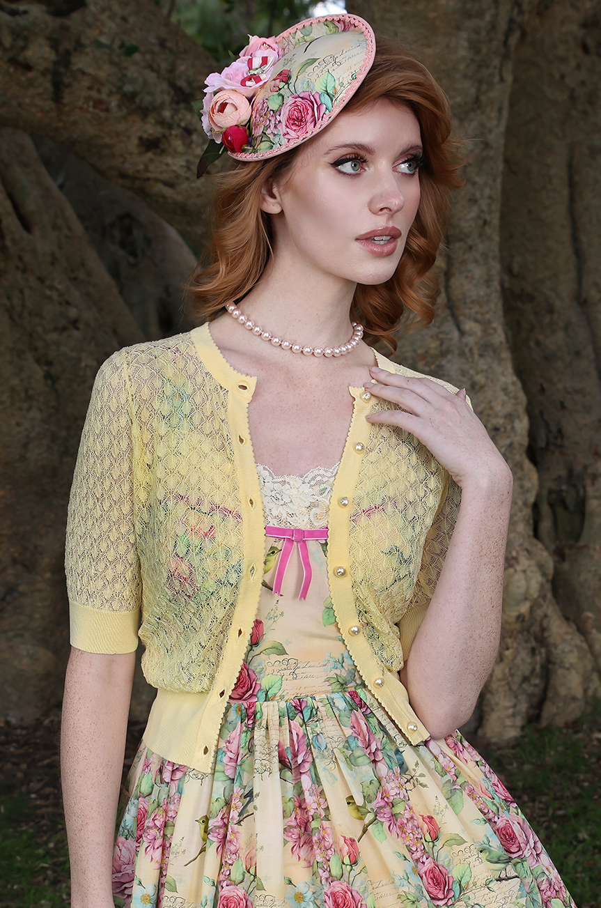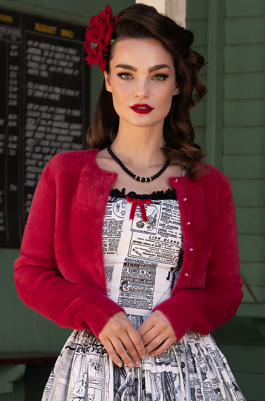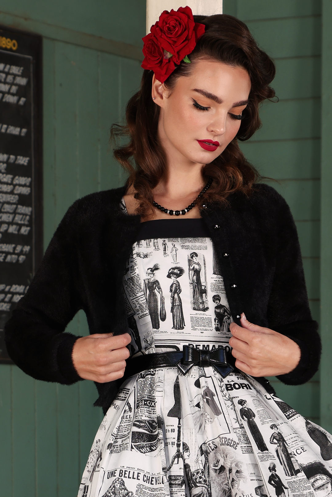 Are you looking for cropped, v neck or 3/4 sleeve cardigans? When it comes to these vintage inspired cardigans, no matter your preference, there is always a Kitten D’Amour cardigan for you! Our crop cardigans are often the favourite in any collection, but you can also count on an elegant fluffy shawl or lace bolero to steal the show!