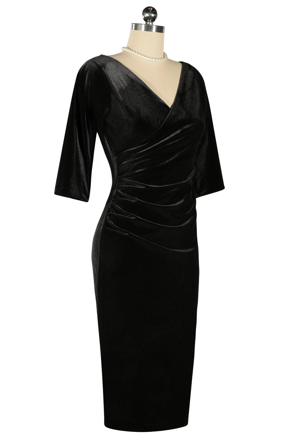 Crafted from sumptuous stretch velvet, each colour drapes beautifully across the body, sculpting a figure-kissing silhouette that whispers silver-screen seduction. The flattering V-neckline and wrap-style front draw the eye to your curves, creating that dramatic, leading-lady allure reminiscent of Hollywood’s golden age.