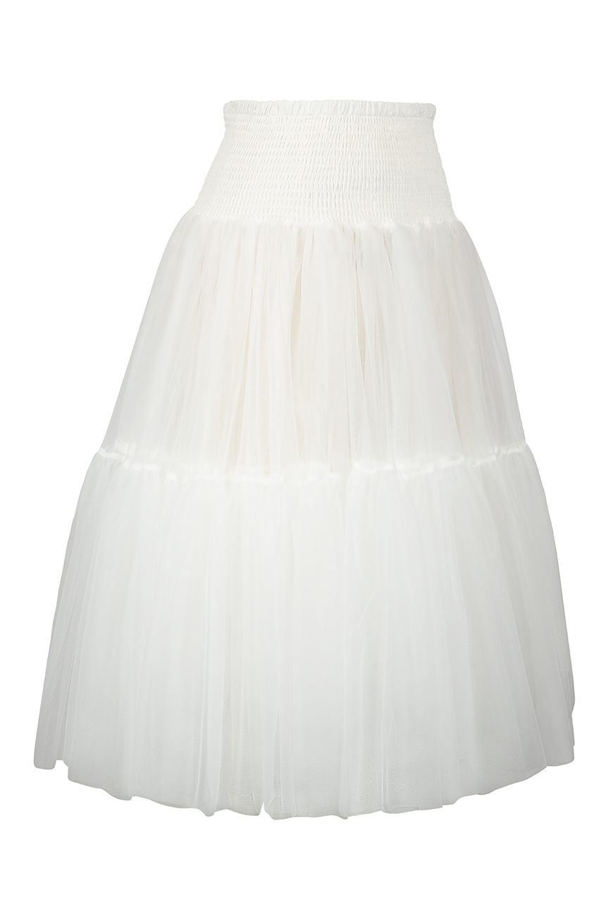 Tea Length Shirred Petticoat (White)