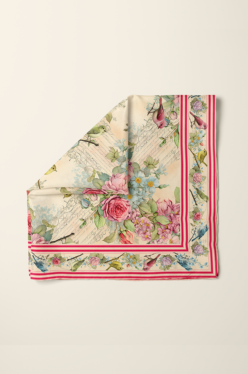 Draping effortlessly in soft chiffon georgette, this versatile piece invites endless styling possibilities… Knot it neatly at the neck for a classic vintage silhouette, tie it in your hair for a playful finish, or loop it through the strap of your handbag for a flourish of Birdsong charm wherever you go.