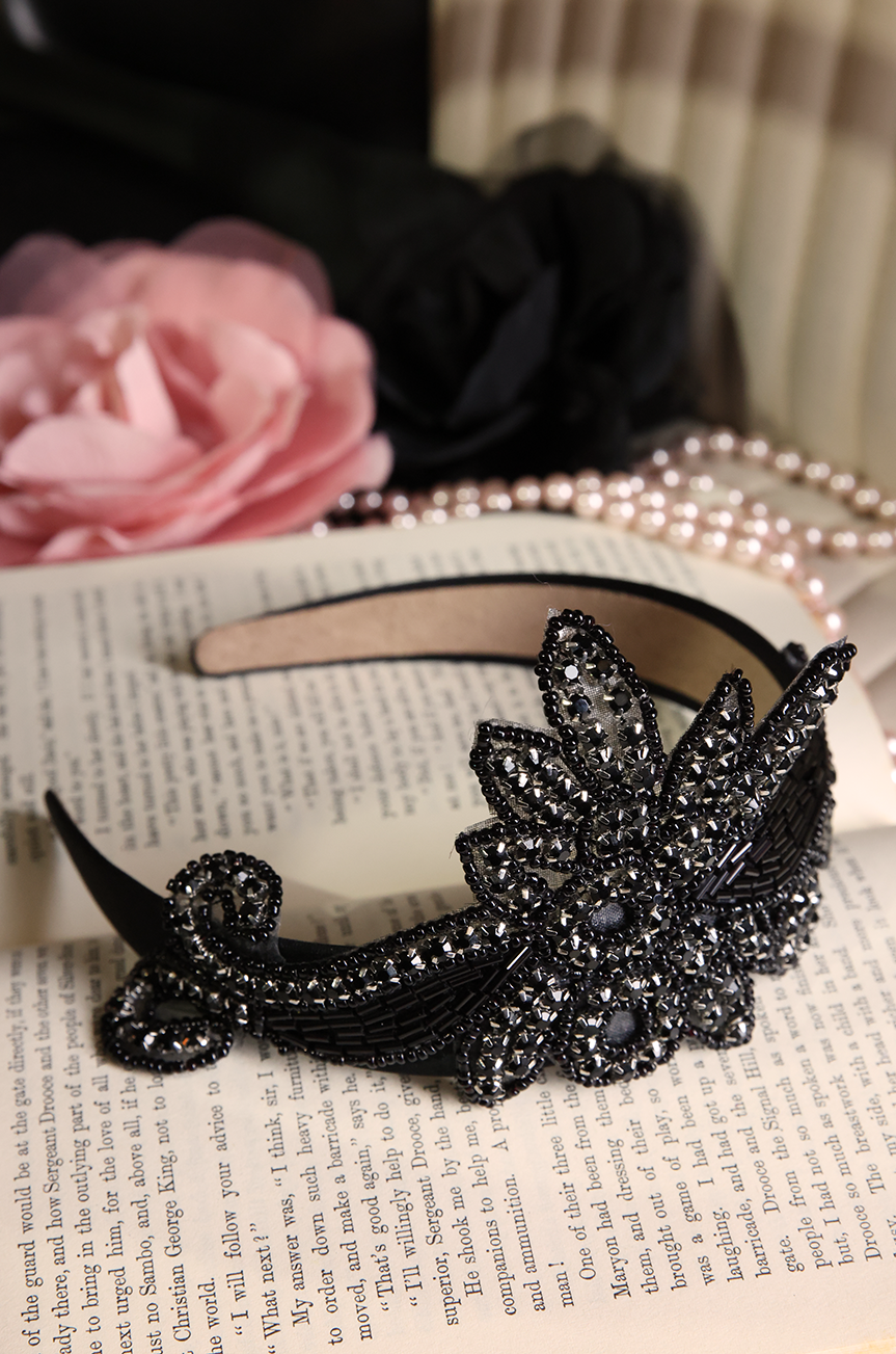 The Bombshell Follies Beaded Headband channels the decadent spirit of the 1920s, with a lavish jet-black beaded motif set against a sleek black base. Intricate, bold, and unmistakably glamorous, it’s the perfect finishing touch for evenings that call for a little extra drama.