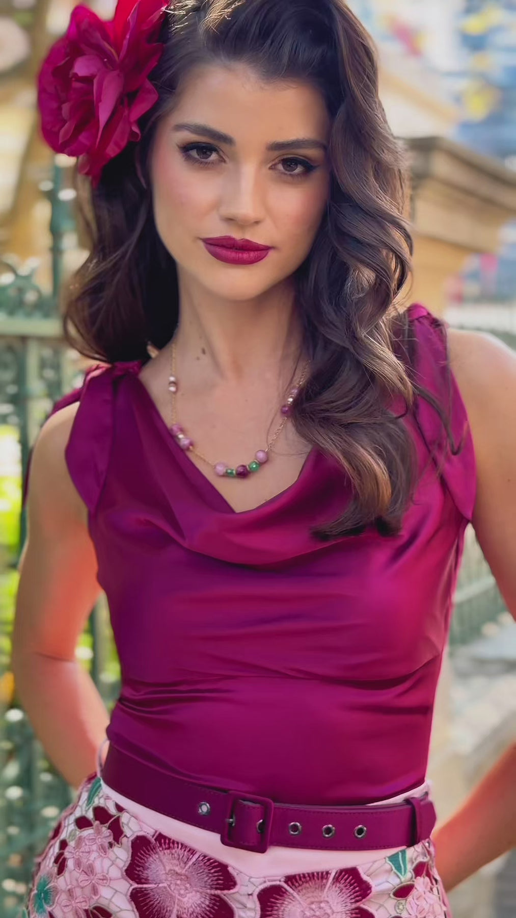 The La Vita Romantica Cowl Top is classic Italian glamour at its finest - elegant, confident, and just a little bit daring. This design flatters the figure with its softly draped cowl neckline and defined waist, creating that unmistakable la dolce vita silhouette.